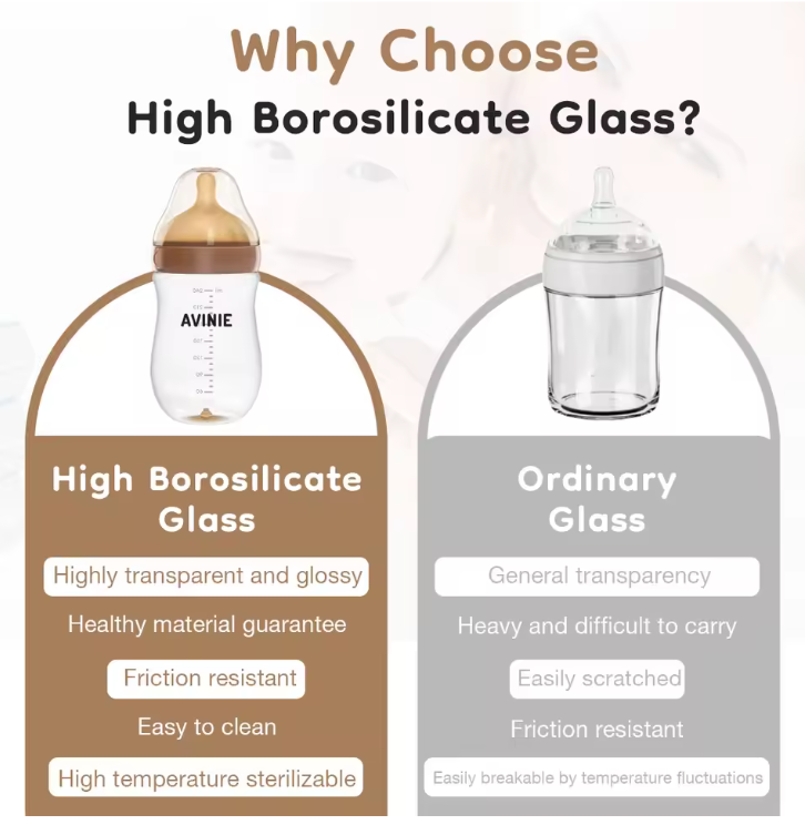 - Bottle body: made of high borosilicate glass, sterilization method, boiled (3-5 minutes) or steamed (5-10 minutes)