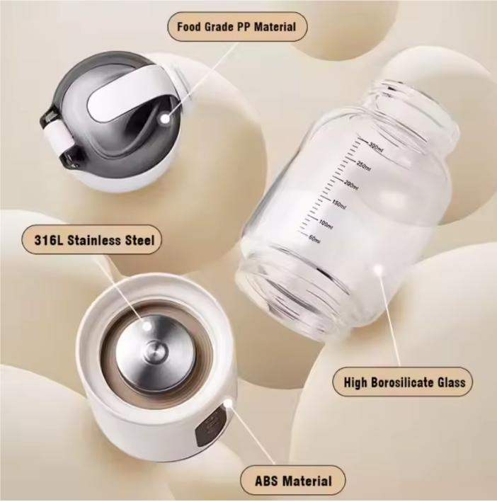 - **Food Grade**: Made of **high borosilicate glass** (BPA free) + **316 SUS stainless steel heating base** – ensures every sip is toxin-free and safe for delicate tummies.